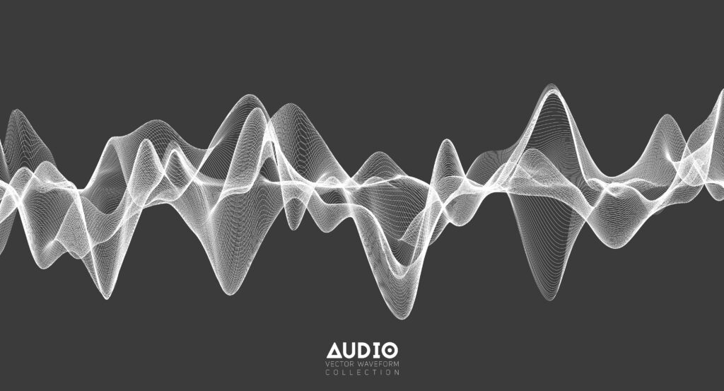 3d audio soundwave. White music pulse oscillation. Glowing impulse pattern.