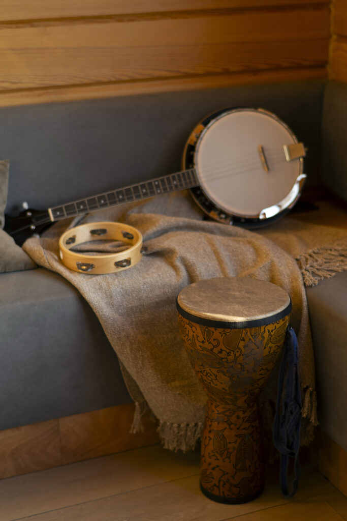 We are going to be in a normal bard’s bag: a lyre, flute, trumpet, drums, tambourines… and some sticky toys at the very bottom. Next to the toys… a Bible? We simply don’t ask. 😏