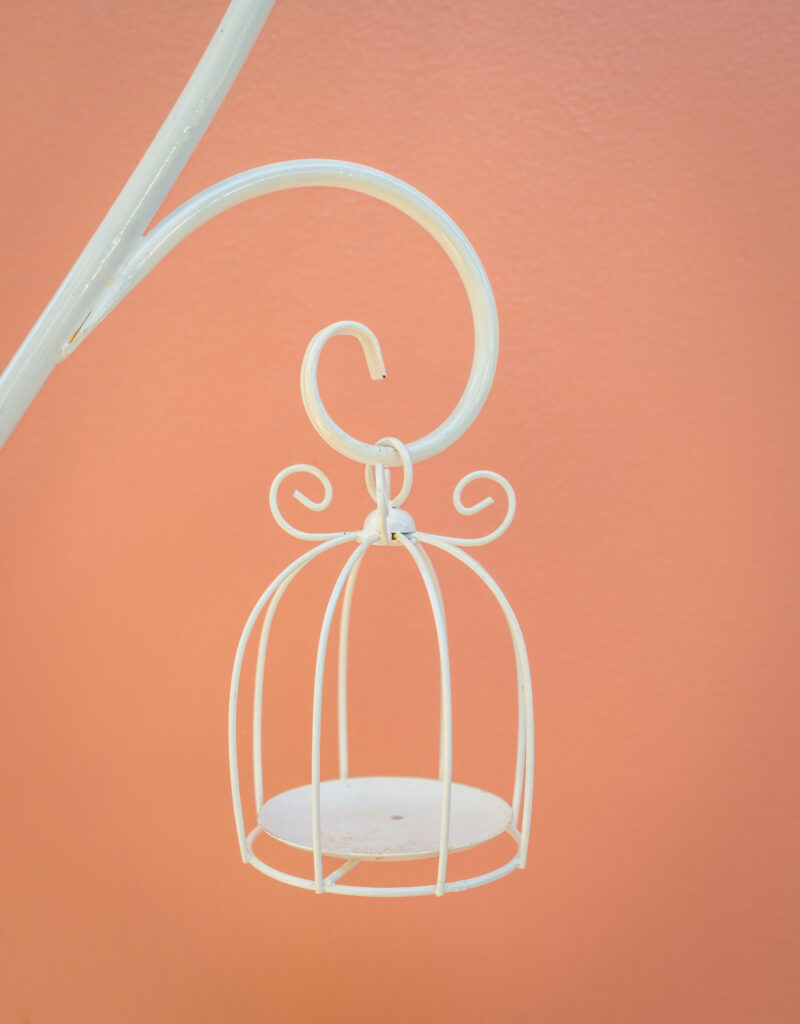 Empty white bird cage