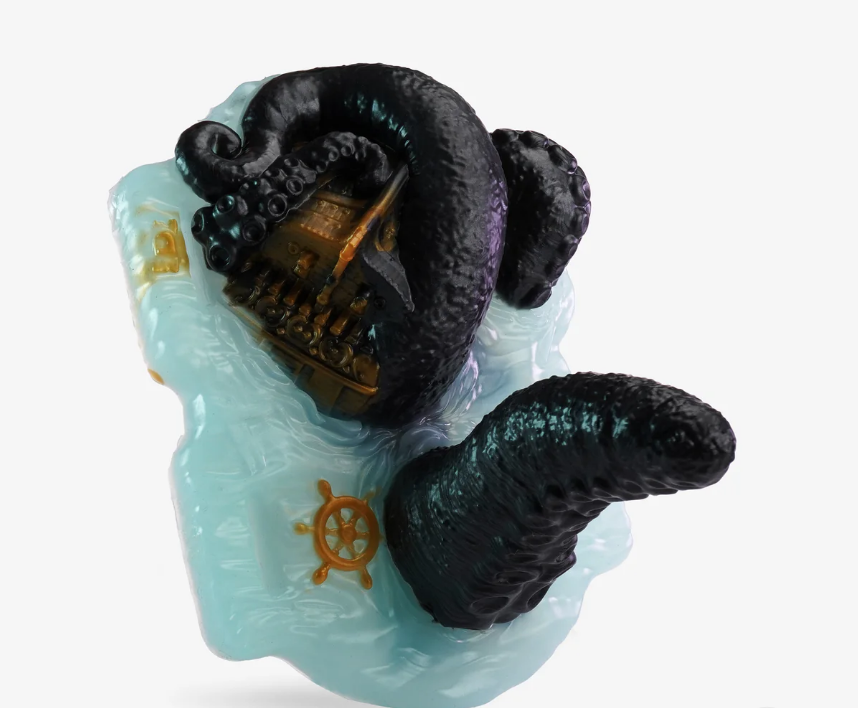 This design from Uncover Creations is multi-use: a grinder with a surprising twist. We love the Kraken sinking a boat motif—will you complete the treasure hunt, or be devoured by the Kraken?